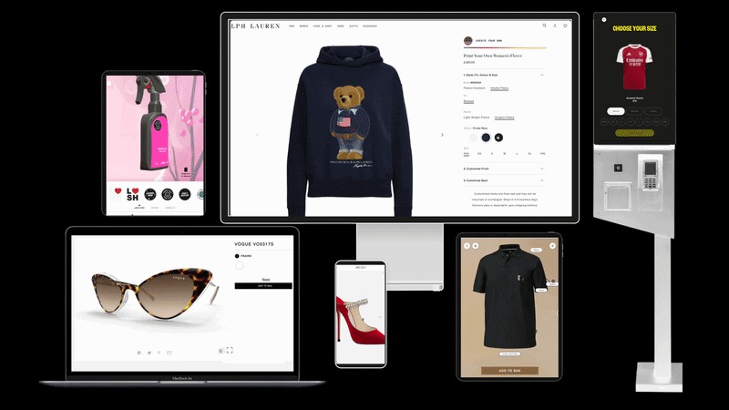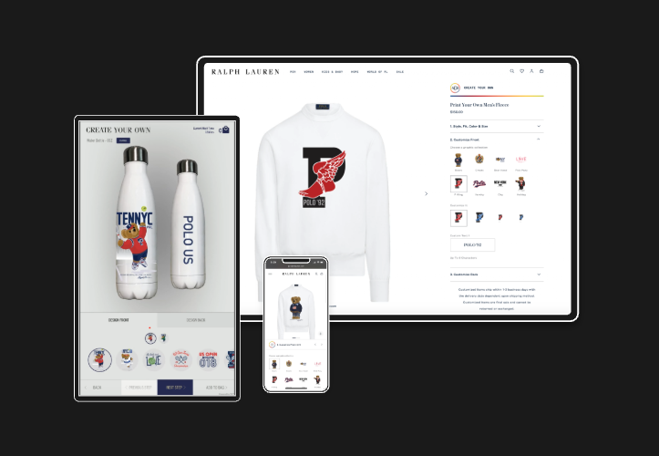Our high-quality visual commerce solution and advanced product customization tools help engage, convert, and build brand loyalty by delivering personalized, premium, one-of-a-kind products into the hands of consumers—no matter where they are.