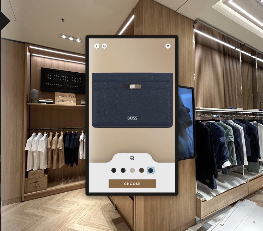 - Apparel Patching: An interactive patching experience for t-shirts and polo shirts, featuring a library of original custom artwork and artistic Hugo Boss logo interpretations.